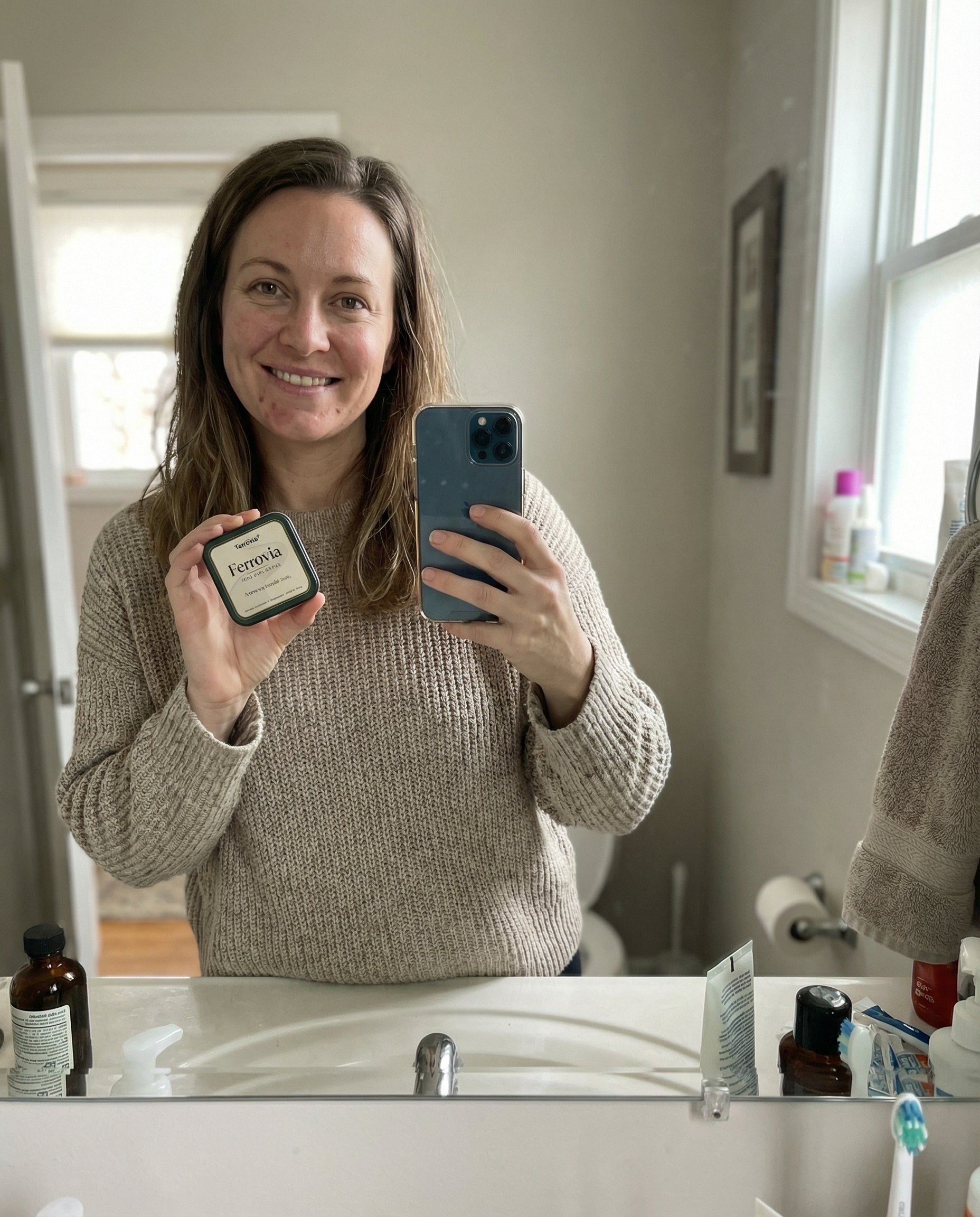 Ferrovia addresses the root cause of both exhaustion and hair loss in one daily strip.